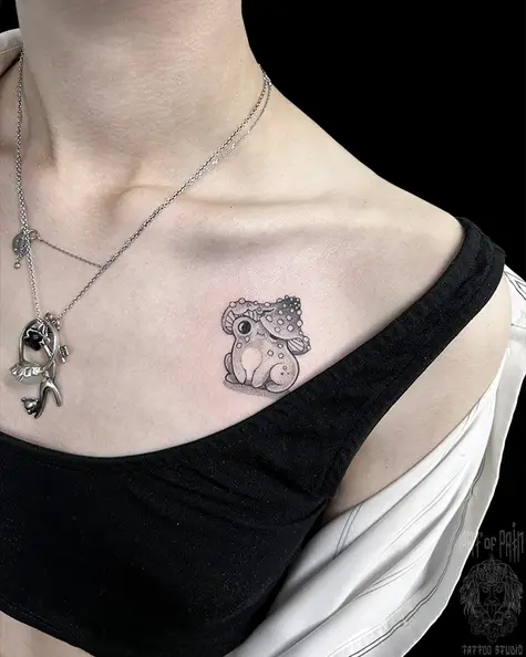 Татуировка женская графика на ключице лягушка 8260