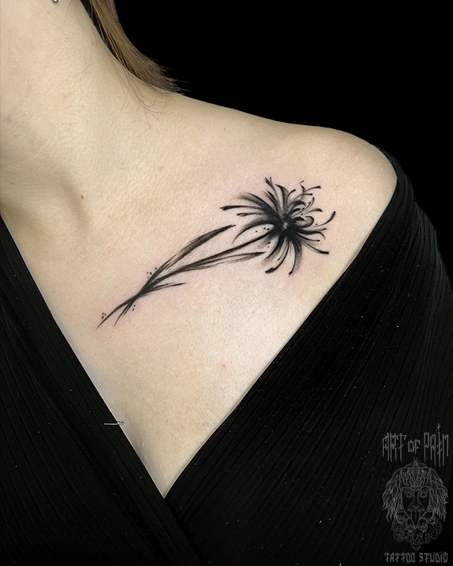 Татуировка женская графика на ключице хризантема (Евгения Шмидт) 8282