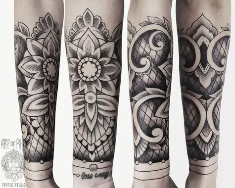 Татуировка женская графика на предплечье мандала 831