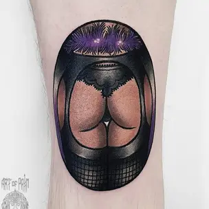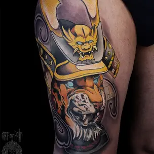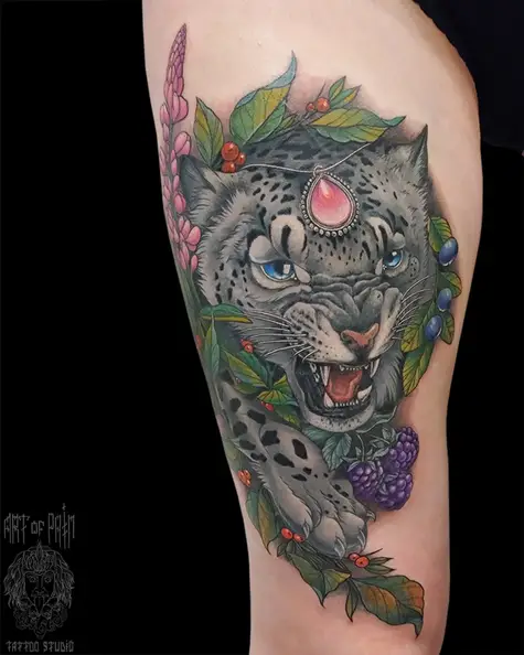 Татуировка женская нью скул на бедре барс (Анастасия Родина) 8342