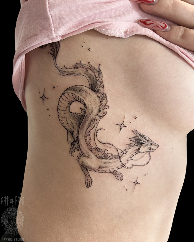Татуировка женская графика на боку Хаку 8343