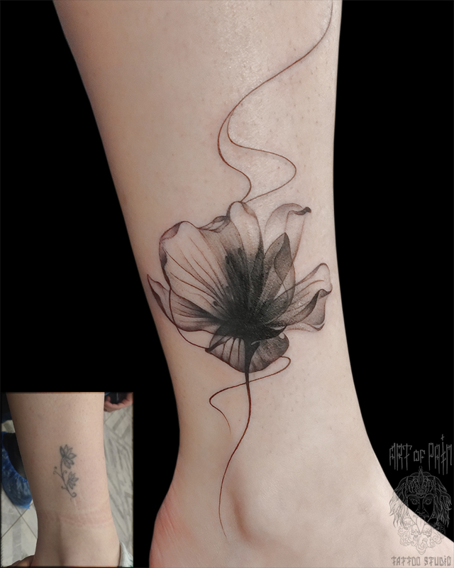 Татуировка женская графика на щиколотке кавер цветок (Анастасия Родина) 8374