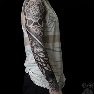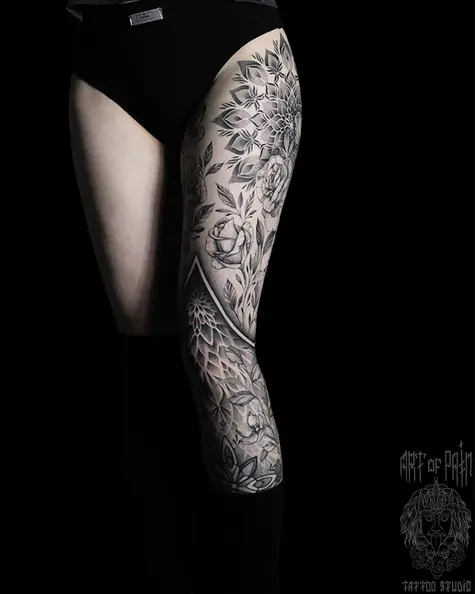 Татуировка женская графика и орнаментал на ноге мандала и розы (Надежда Полякова) 8383