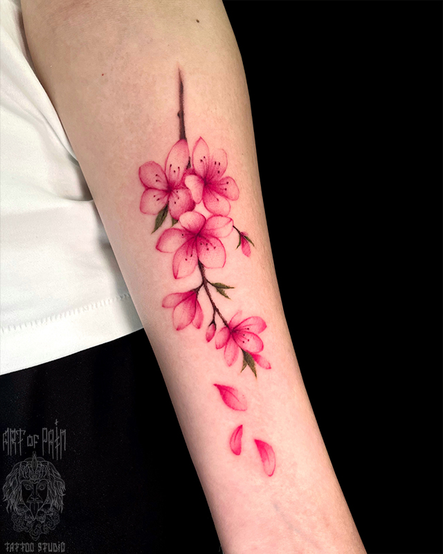 Татуировка женская графика на предплечье сакура (Евгения Шмидт) 8386