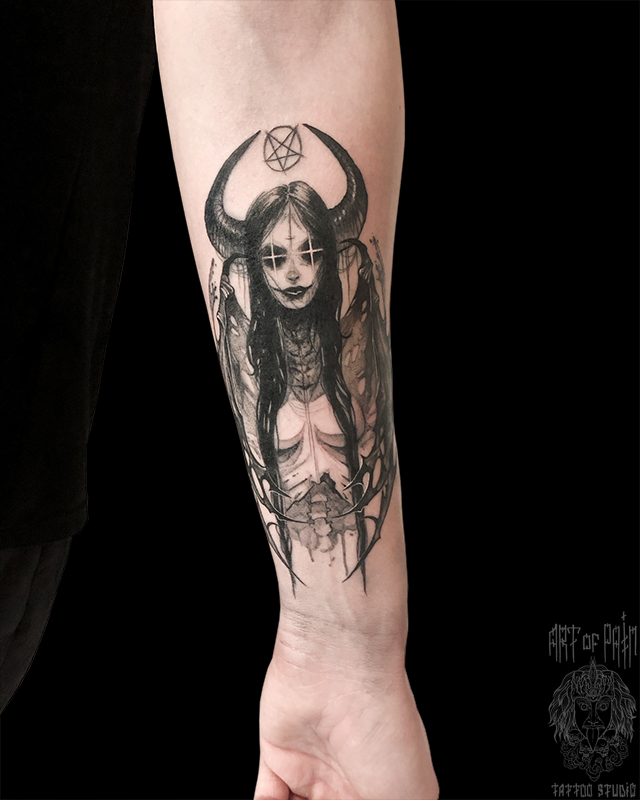 Татуировка женская графика на предплечье демон (Анастасия Родина) 8395