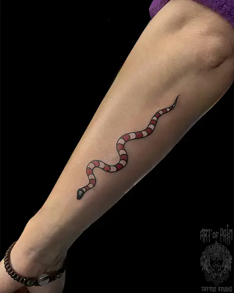 Татуировка женская графика на предплечье змея 8413