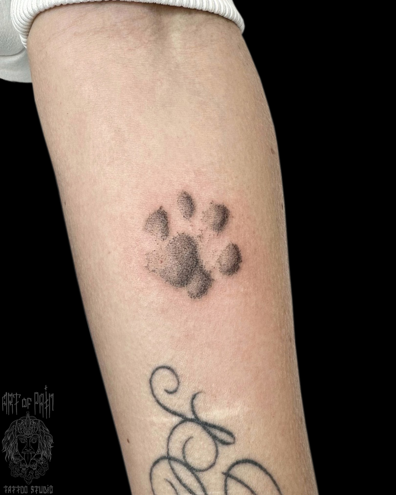 Татуировка женская графика на предплечье след лапы (Мария Котова) 8440