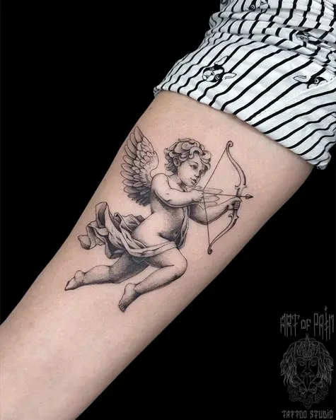 Татуировка женская графика на предплечье ангел (Мария Котова) 8468