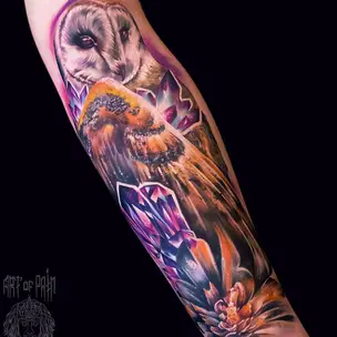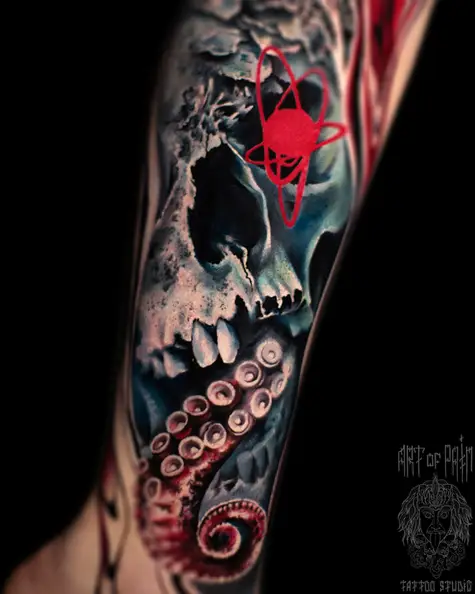 Татуировка женская цветной реализм на голени череп (Дмитрий Шейб) 8474
