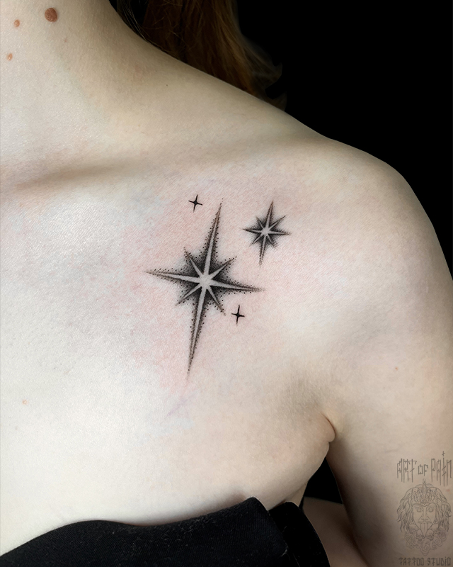 Татуировка женская графика на ключице звезды (Евгения Шмидт) 8513