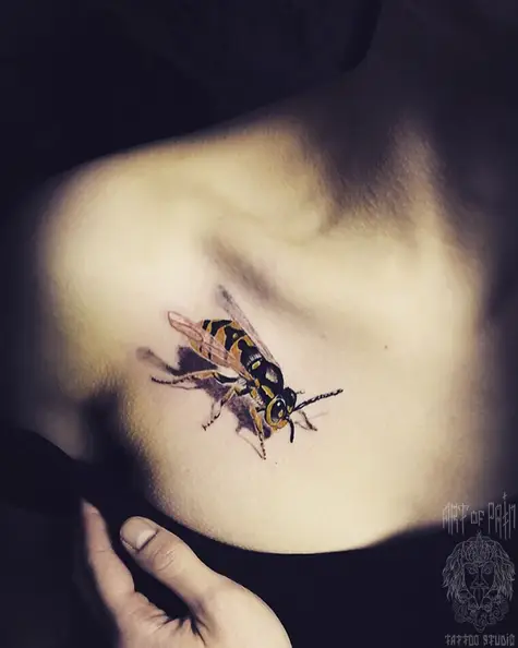 Татуировка женская реализм на ключице пчела 8591