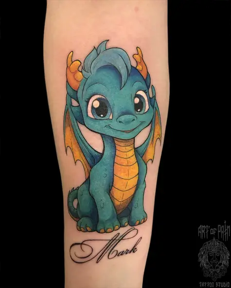 Татуировка женская нью-скул на предплечье дракончик (Анастасия Родина) 8653