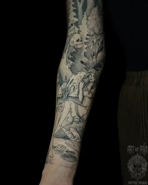 Татуировка женская графика на предплечье девушки, черепа (Мария Котова) 8667