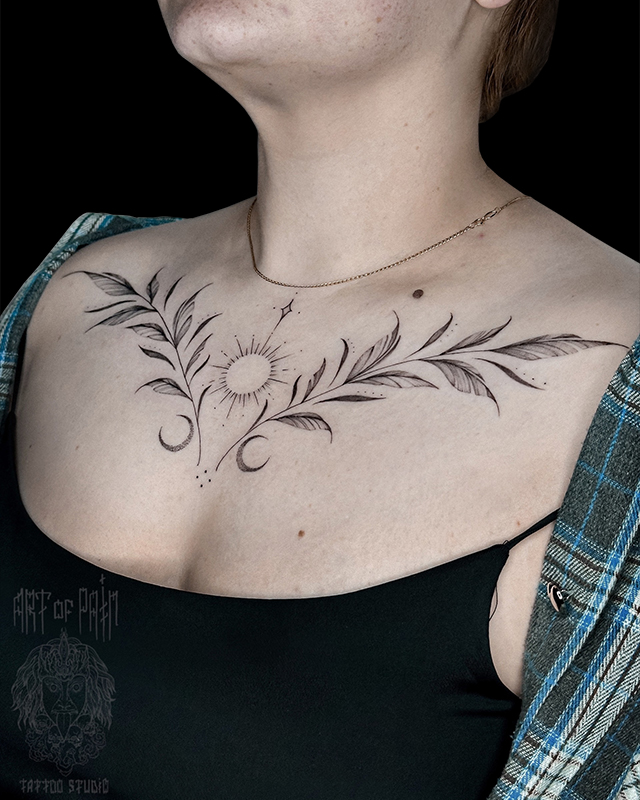 Татуировка женская графика на груди веточки (Мария Котова) 8688
