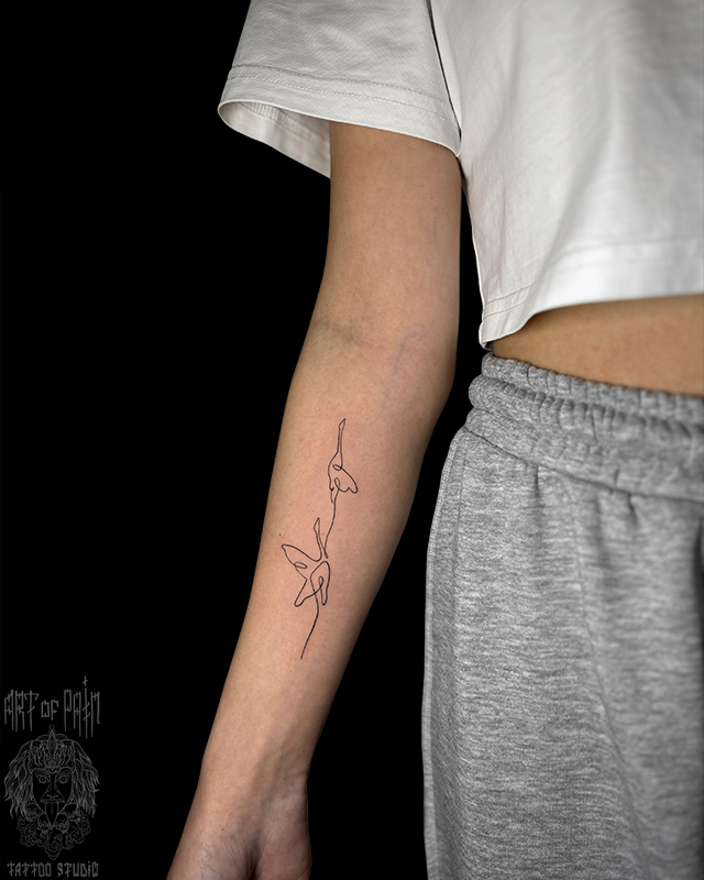 Татуировка женская графика на предплечье птицы 8705
