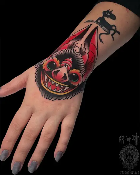 Татуировка женская нью скул на запястье летучая мышь 8720