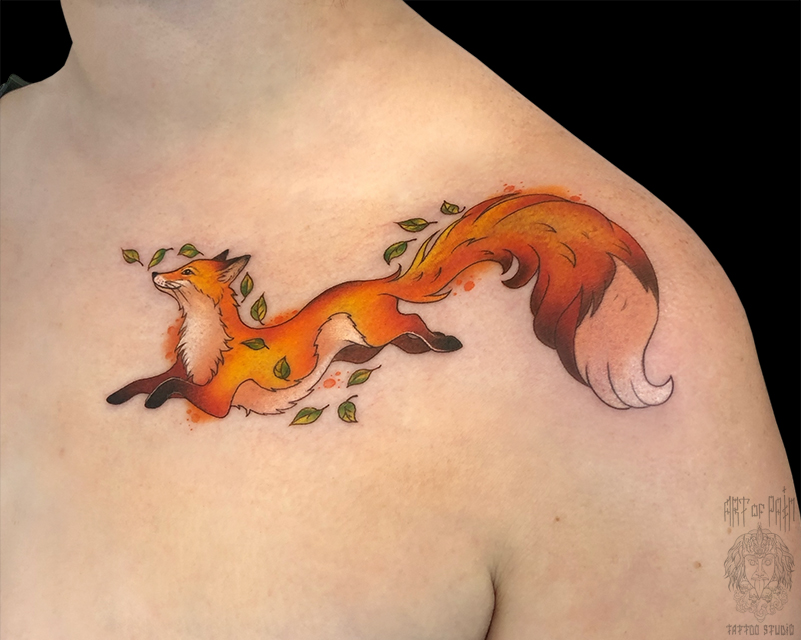Татуировка женская на графика ключице лиса (Анастасия Родина) 8756