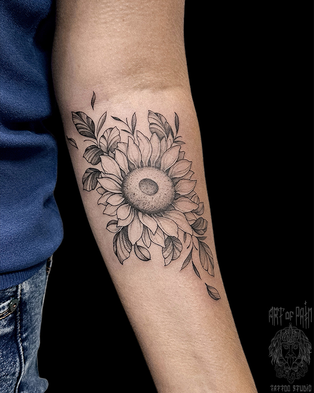 Татуировка женская графика на предплечье подсолнух (Мария Котова) 8767