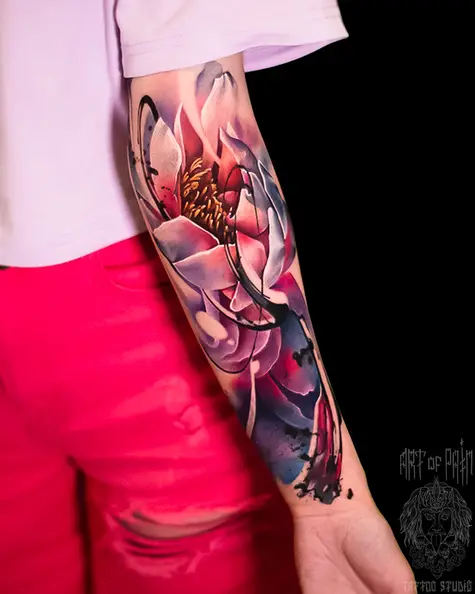 Татуировка женская цветной реализм на предплечье лотос (Дмитрий Шейб) 8774