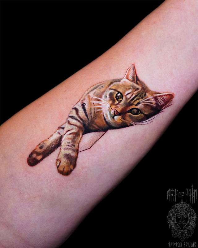 Татуировка женская цветной реализм на предплечье котик (Анастасия Юсупова) 8808