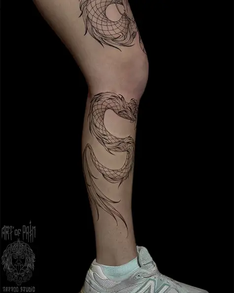 Татуировка женская графика на ноге дракон (Мария Котова) 8828
