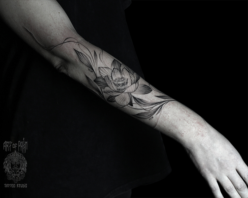 Татуировка женская графика на предплечье лотос (Надежда Полякова) 8848