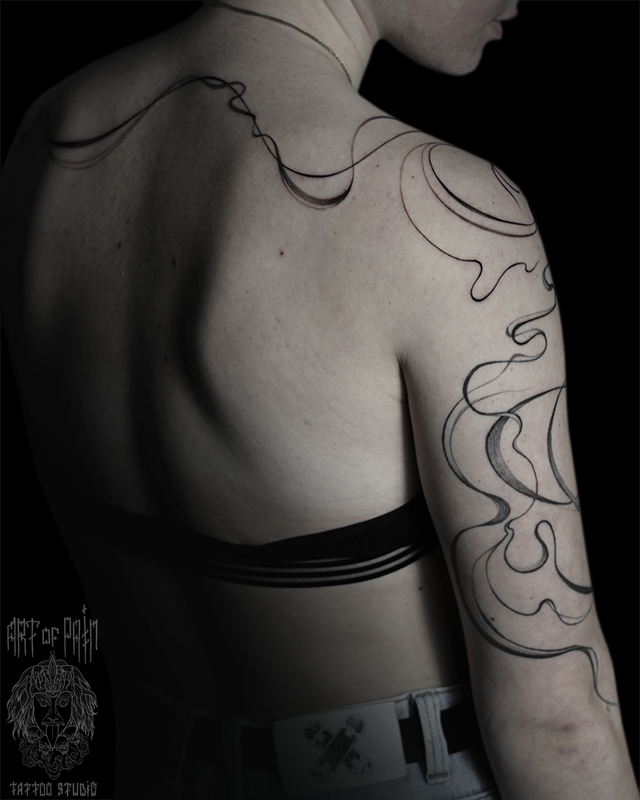 Татуировка женская графика на плече и спине узор (Надежда Полякова) 8856