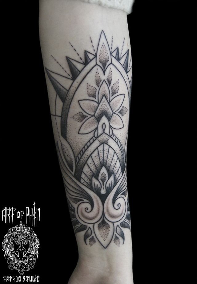 Татуировка женская графика на предплечье узор с цветком 889