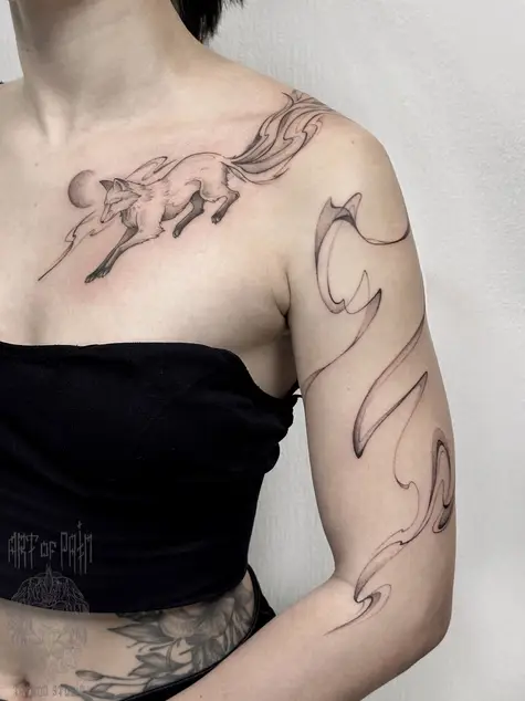 Татуировка женская графика на руке лиса и дым (Мария Котова) 8921