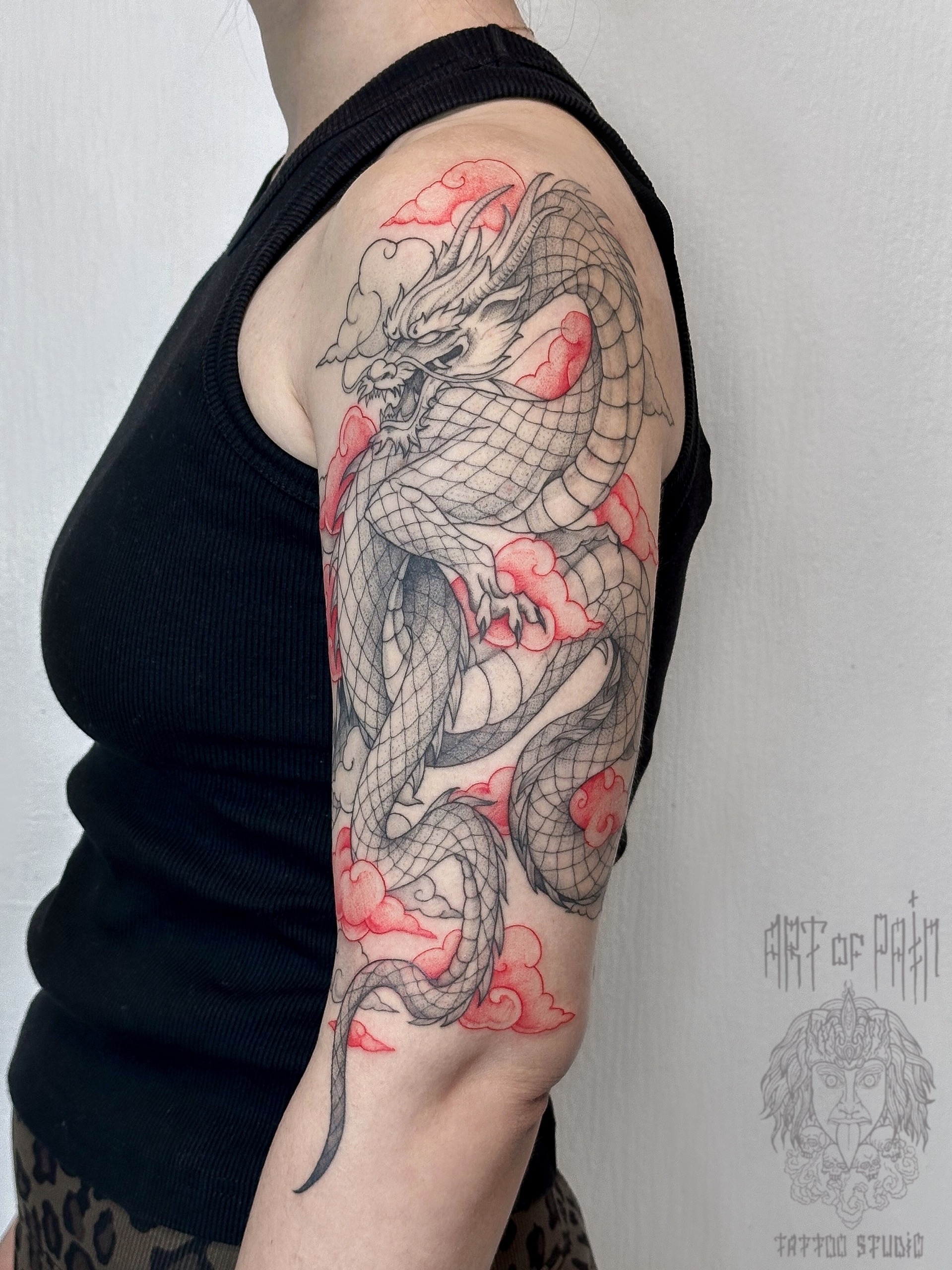 Татуировка женская графика на плече дракон (Мария Котова) 8924