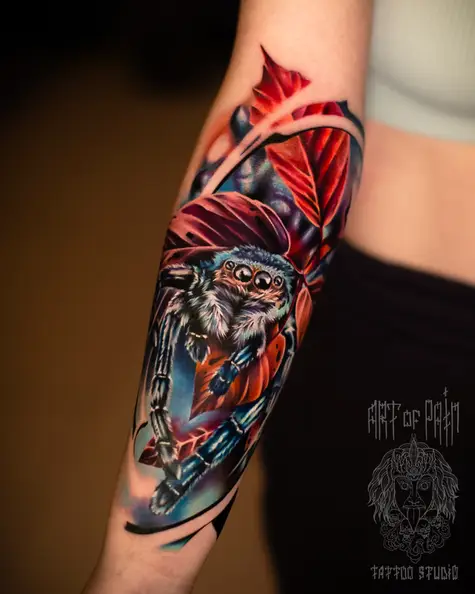Татуировка женская цветной реализм на предплечье паук-птицеед (Дмитрий Шейб) 8943