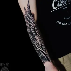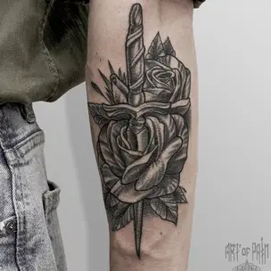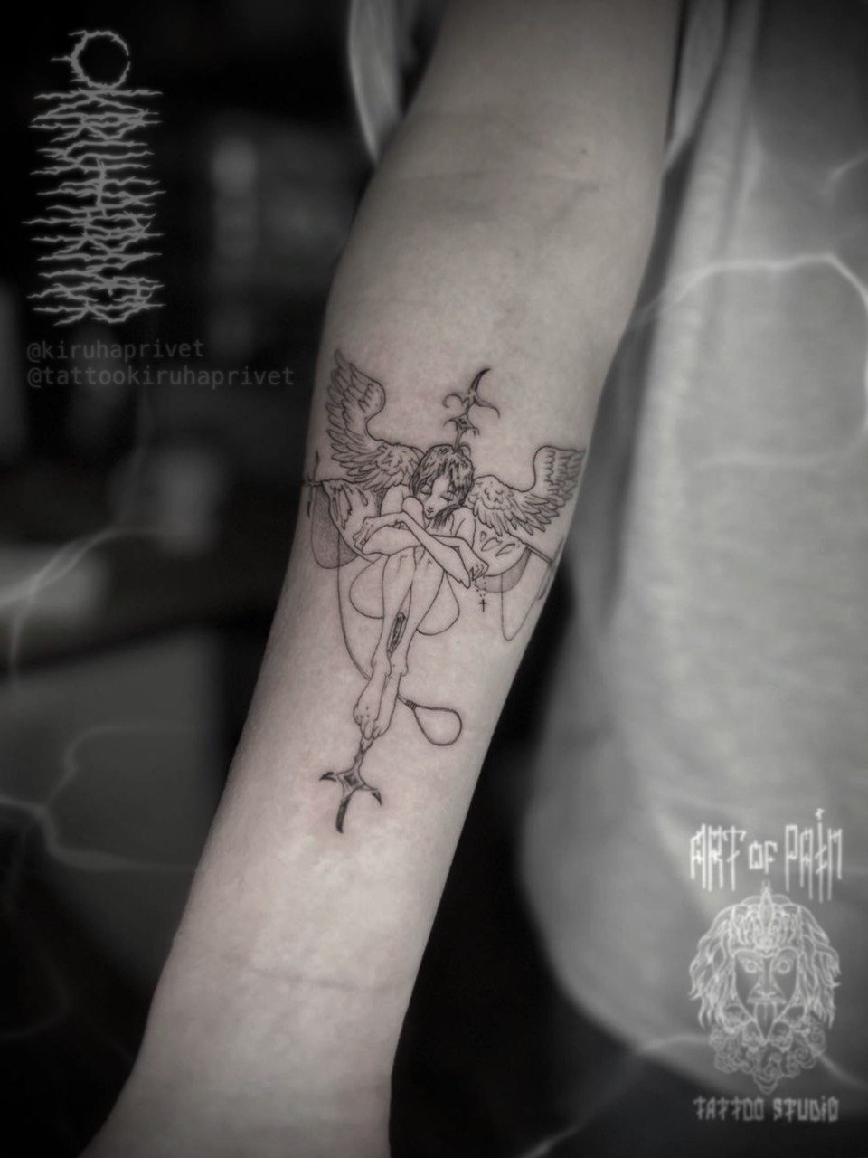 Татуировка женская графика на предплечье ангел и кинжалы (Кирилл Плотников) 9002