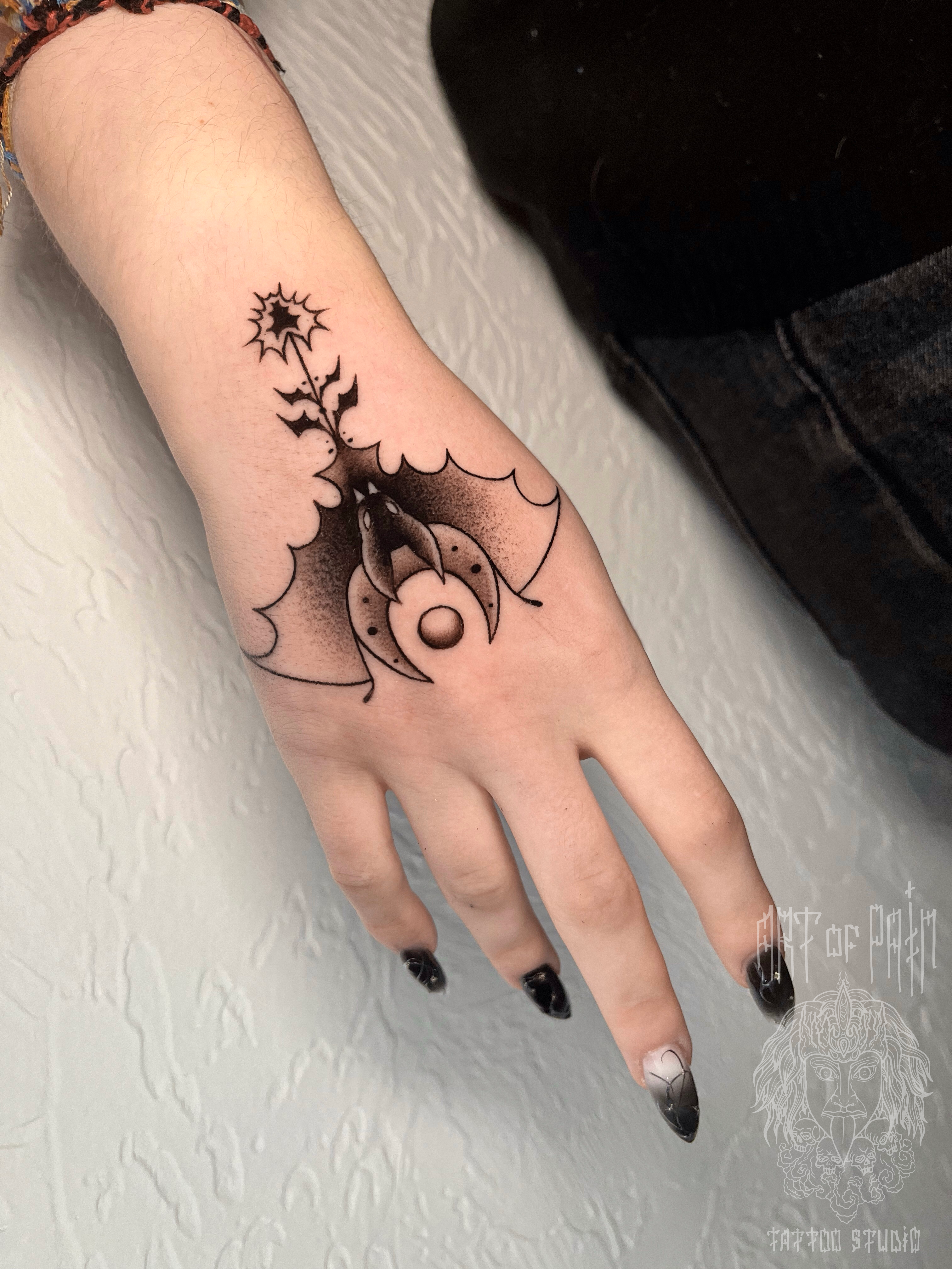 Татуировка женская графика на руке летучая мышь (Евгения Шмидт) 9021
