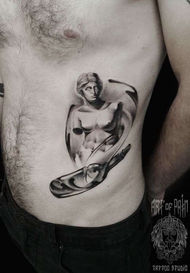 Татуировка мужская Black&Grey на боку Венера Милосская и бутылка 1020