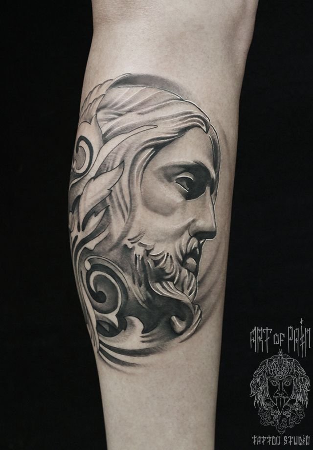 Татуировка мужская чикано на икре портрет 1045