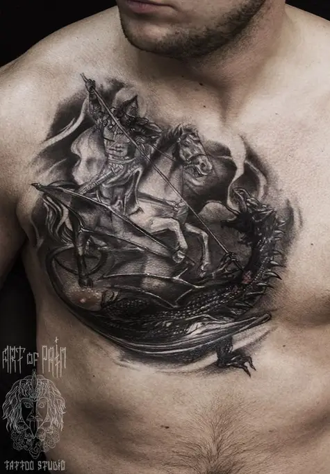 Татуировка мужская Black&Grey на груди дракон (Слава Tech Lunatic) 1054