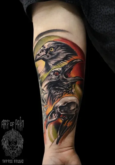 Татуировка мужская фентези на предплечье птицы (Слава Tech Lunatic) 1085