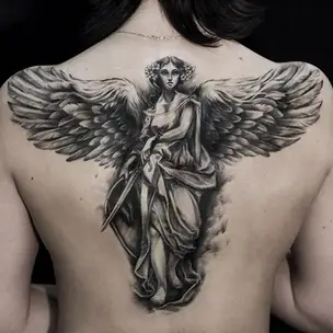 Татуировка мужская Black&Grey на лопатке ворон 1112