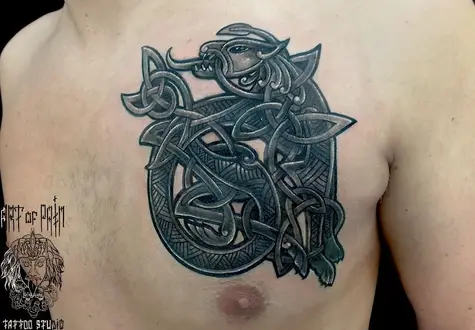 Татуировка мужская Black&Grey на груди кельтика 1118