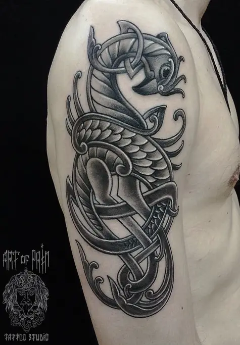 Татуировка мужская Black&Grey на плече кельтика 1119