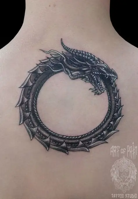 Татуировка мужская Black&Grey на спине кельтика 1120