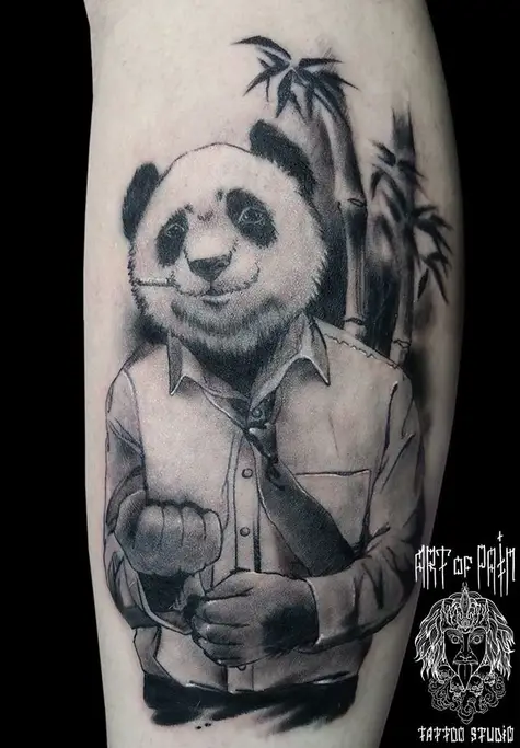 Татуировка мужская Black&Grey на предплечье панда 1127