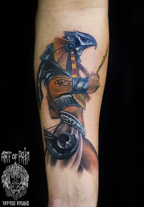 Татуировка мужская фентези на предплечье египетская 1209