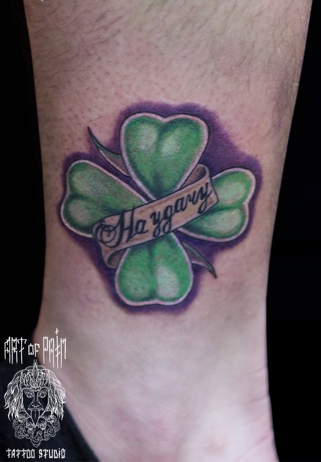 Татуировка мужская нью скул на щиколотке клевер 1334
