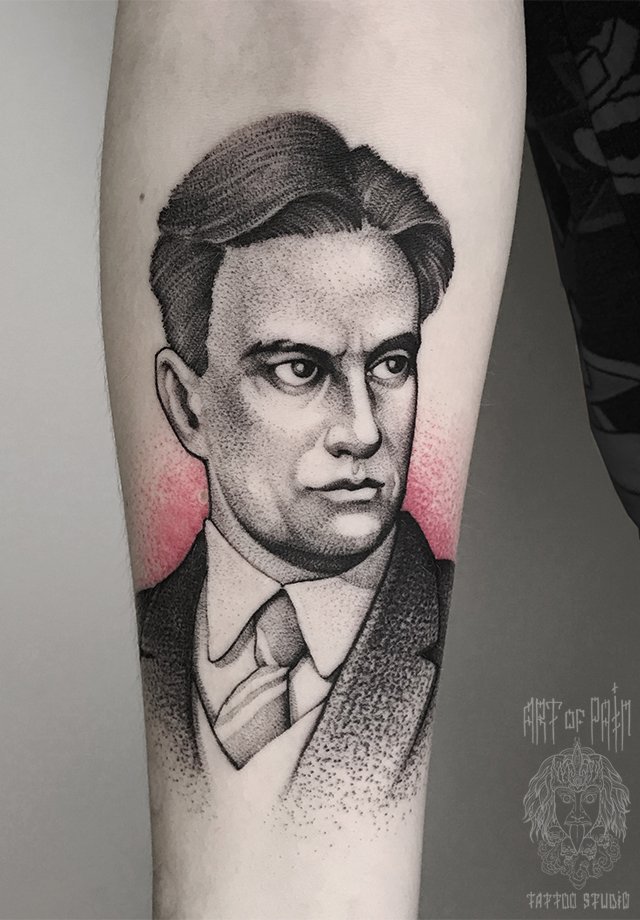 Татуировка мужская дотворк на предплечье Маяковский 1554