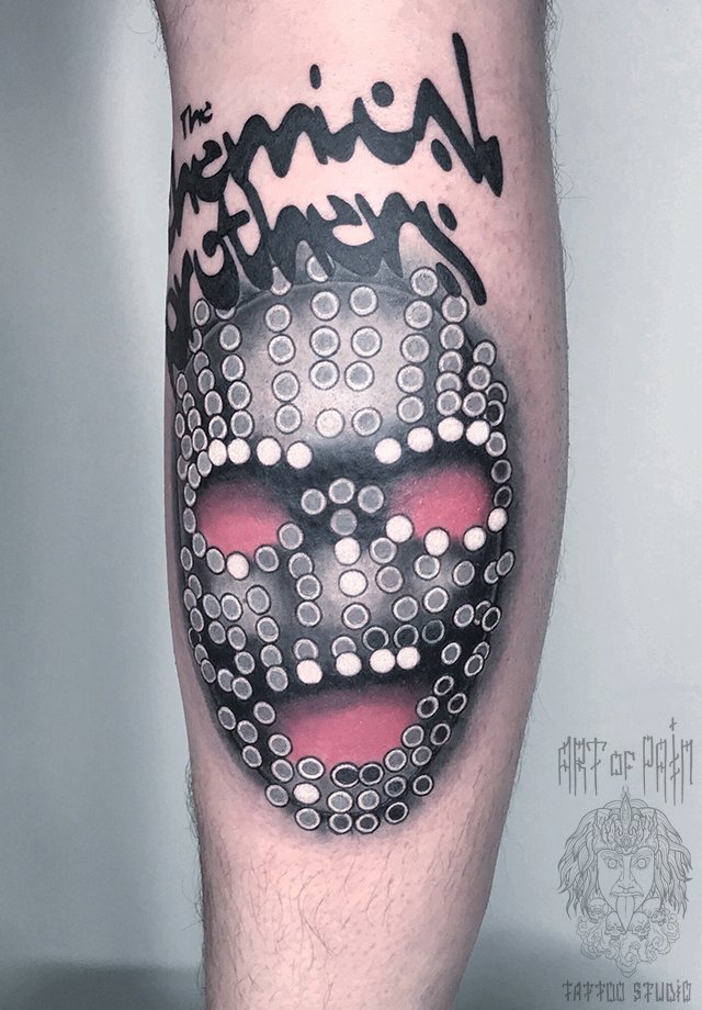 Татуировка мужская хоррор на голени маска 1596