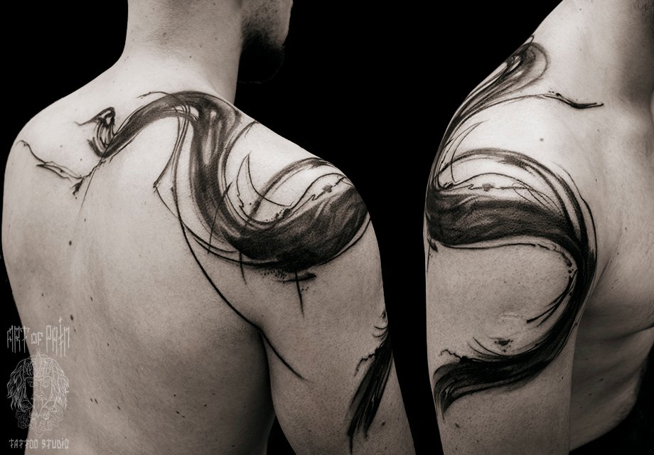Татуировка мужская black&grey на плече дым 1636
