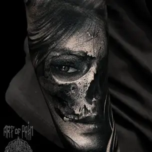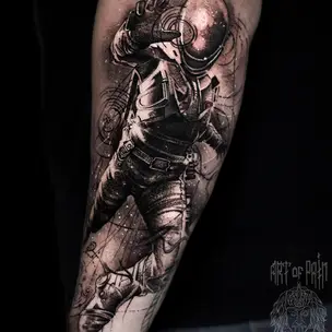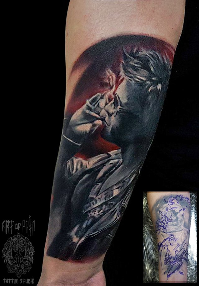 Татуировка мужская реализм на предплечье человек с сигаретой кавер (Слава Tech Lunatic) 1699