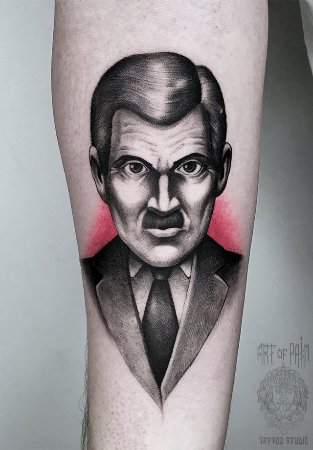 Татуировка мужская дотворк на предплечье Большой Брат 1729