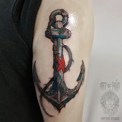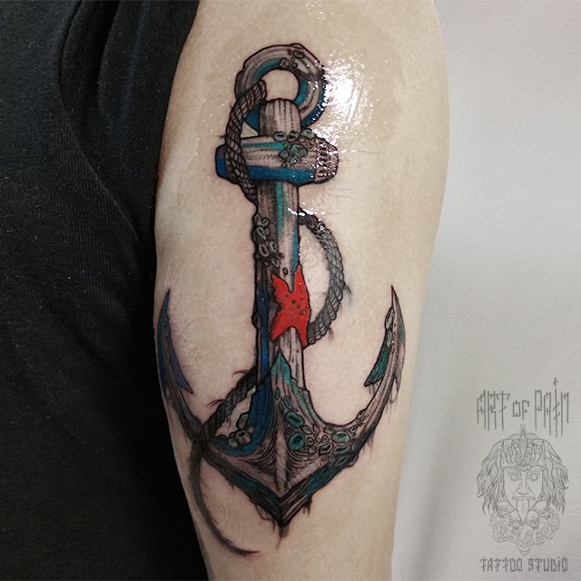 Татуировка мужская графика на плече якорь 1792